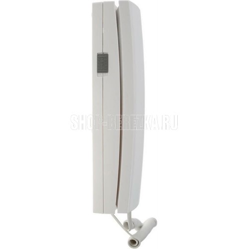 Характеристики: Кнопка открытия двери: да Регулировка громкости: да Потребление тока в режиме разговора: 12-18 мА Тип аудиотрубки: координатная Система подключения: двухпроводная Размеры трубки (с базой): 210х78х45 мм Вес изделия (без упаковки): 221 гр Цвет: белый