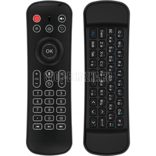 Пульт-аэромышь для смарт ТВ с компактной клавиатурой. Тип: беспроводная, usb-приемник; Рабочее расстояние: до 10м; Питание: 2 батареи ААА; Материал: Пластик; Цвет: Черный; Вес: 128г.; Габариты: 168x56x22 мм.