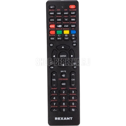 Универсальный пульт для телевизора REXANT отличается простотой в использовании и совместим с большинством марок и моделей современных телевизоров, таких как: VESTEL, GRUNDIG, SHIVAKI, AKIRA, DAEWOO, KONKA, PRIMA, JVC, THOMSON, HISENSE, TCL, SHARP, SONY, PANASONIC, SANYO, HITACHI, TOSHIBA, PHILIPS, LG, SAMSUNG, ERISSON, FUNAI, CHANGHONG, AIWA, SKYWORTH. Пульт поддерживает такие функции, как: меню, настройки, стандартные настройки, субтитры, канал, громкость, язык и т. д., что обеспечивает максимально полное и удобное управление телевизором. Имеет низкое энергопотребление, удобен и прост в настройке. Питание устройства осуществляется от 2 батареек типа ААА (в комплект не входят). Кол-во кнопок: 49 шт.