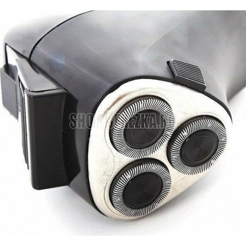 Кол-во оборотов двигателя в мин. от 3 500 до 3 700. 3 бреющие головки. Самозатачивающиеся ножи. Сетевое питание 220 В. Мощный двигатель. Откидной бреющий блок с плавающими ножами. 5 настроек глубины плавания ножей д/чувствительной кожи. Футляр.
