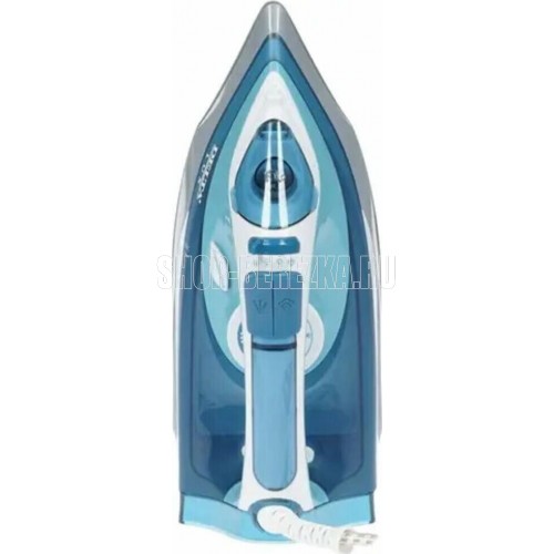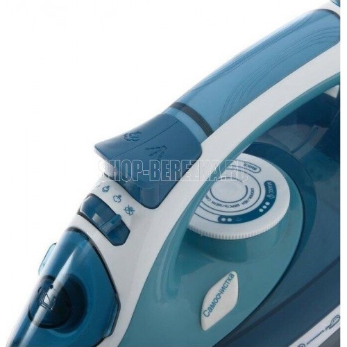 Макс. мощность 2400 Вт. Объем резервуара для воды 350 мл. Длина шнура 1,8 м. Уникальный паровой носик. Керамическое покрытие подошвы. Прозрачный резервуар для воды. Индикатор нагрева утюга. Терморегулятор. 3 рабочих режима: сухое глажение, отпаривание, разбрызгивание воды. Возможность регулировки степени отпаривания, вертикального отпаривания. Функция Паровой удар, Самоочистка, Антикапля, Антинакипь. Защита от перегрева. Цвет: белый с серо-голубым.
