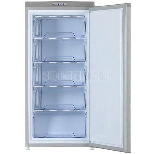Габариты (ВхШхГ): 122х57,4х61см; Объем: 180л; Вес: 47кг; Однокамерный морозильник на 5 ящиков; Управление: электромеханическое; Размораживание морозильной камеры: ручное; Производительность замораживания, кг/сут: не менее 14; Потребление энергии: 281 кВт/год; Перевешиваемые двери; Цвет: металлик искристый