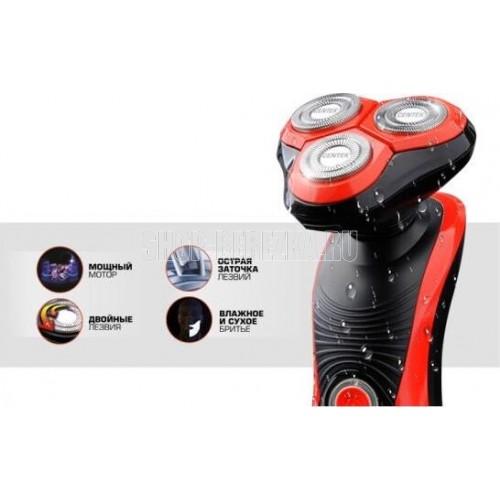 Бритва Centek CT-2168 (красн) ротор 3D, +ВЛАЖНОЕ БРИТЬЁ, 3 плав.головки, 2-ные лезвия, до 50 мин раб