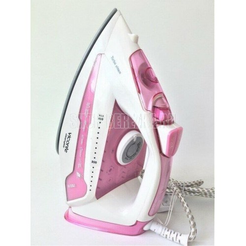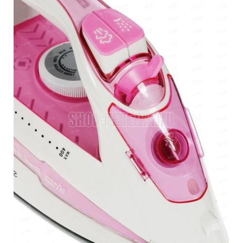 Утюг, мощность 2900W, керамическая подошва, вертикальная подача пара, паровой удар до 140 г/мин, сухое глажение, терморегулятор, функция самоочистки, возможность регулировки степени отпаривания, мощный разбрызгиватель, индикатор нагрева утюга, резервуар для воды – 400 мл, стаканчик для наполнения водой. Цвет: розовый.