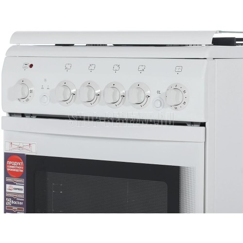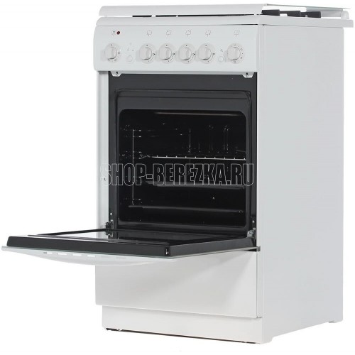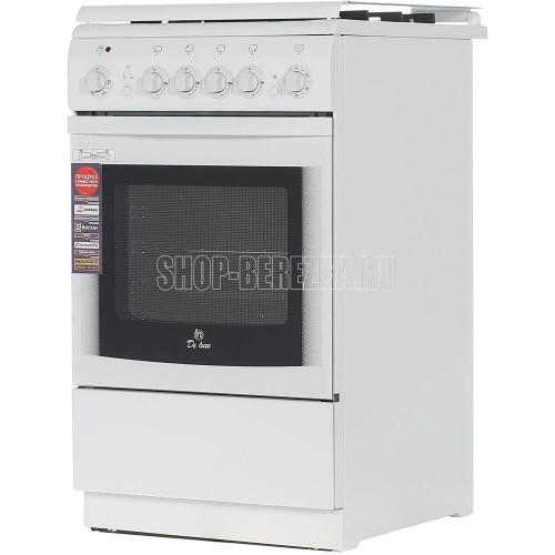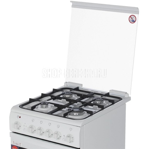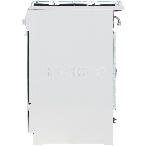 Габариты 850*500*600 Вес, кг - 37 Объём духовки 54 л. Основные характеристики варочной поверхности: Электророзжиг 4 газовые конфорки 1,0/1,7/1,7/3,0 кВт Основные характеристики духового шкафа: Электрическая духовка Нижний ТЭН - 1,2 кВт ТЭН верхний/гриль - 0,8 кВт/1,8 кВт Терморегулятор Освещение Вертел Гриль Механический таймер Комплектация: Большой противень Малый противень Решётка для жарки Чугунная решётка Стеклянная крышка рабочего стола Хозяйственный отсек Техническое описание: Цвет - белый