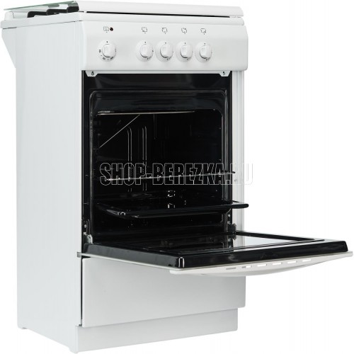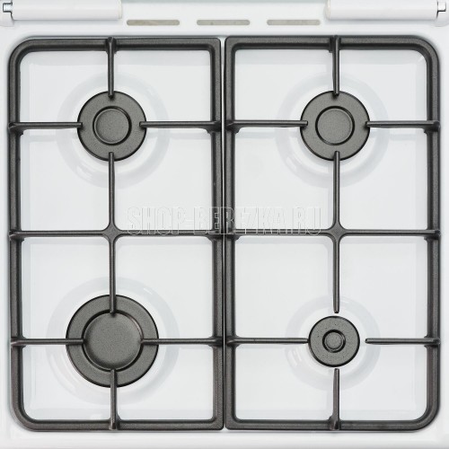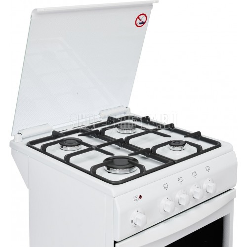 Габариты: 850*500*500 Вес, кг - 37 Основные характеристики варочной поверхности: 4 газовые конфорки 1,0/1,75/1,75/3,0 кВт Основные характеристики духового шкафа: Электрическая духовка Два нагревательных элемента: 1,2 кВт и 0,8 кВт Терморегулятор Объём духовки 43 л. Комплектация: Большой противень Малый противень Решётка для жарки Чугунная решетка Стеклянная крышка рабочего стола Хозяйственный отсек Техническое описание: Цвет - белый