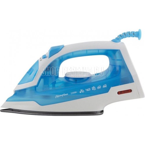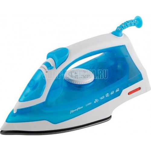 Подошва с тефлоновым покрытием Мощность 2200Вт Индикатор нагрева Сухая глажка Пар Паровой удар Спрей Функция самоочистки Указатель максимального уровня воды Плавная регулировка температуры Шарнирное вращение шнура на 360 Подошва 18,4 см Защита от перегрева