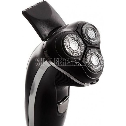 Номинальная потребляемая мощность 3 Вт, Напряжение 2,4 В, Время непрерывной работы 30 минут, Время заряда аккумуляторной батареи 8 часов, Бритвенная система роторная, Температура эксплуатации +5...+35°С, 3 плавающие бритвенные головки обеспечивают простоту, удобство и бритье без раздражения кожи, 3D-система бритья, Встроенный складной триммер, Ножи из высококачественной нержавеющей стали .
