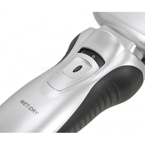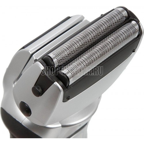 Электробритва в водонепроницаемом корпусе, ей можно бриться влажным способом даже находясь под душем. После полного заряда встроенного аккумулятора, на которое у вас уйдет не менее 8-ми часов, бритвой можно пользоваться 21 минуту. Бритва имеет защиту от случайного включения и триммер для подравнивания волос.