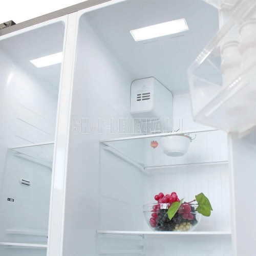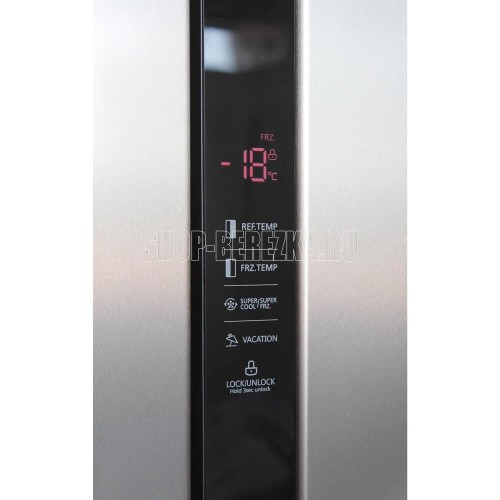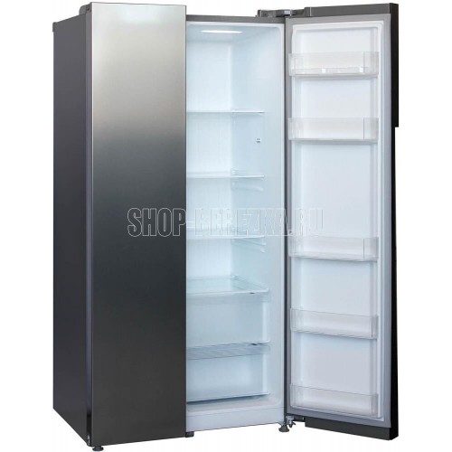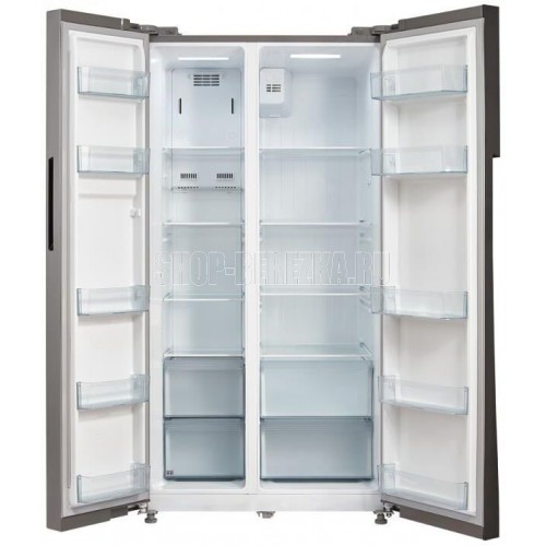 Холодильник Side-by-Side с системой Full No Frost. Цветовое исполнение нержавеющая сталь. Номинальный полезный объем, дм3 510. Номинальный полезный объем холодильной камеры, дм3 335. Номинальный полезный морозильной камеры, дм3 175. Габаритные размеры (без/с упаковкой), мм (ВхШхГ) 1788х895х690/ 1868х955х755. Тип управления LED-дисплей. Количество компрессоров 1. Корректированный уровень звуковой мощности (не более), дБа 43. Класс энергетической эффективности A+. Климатический класс, температура окружающего воздуха ST,SN,N +16...+38°C. Освещение LED. Система суперохлаждение. Система суперзаморозка. Режим отпуск. Защита от детей.