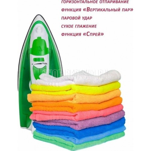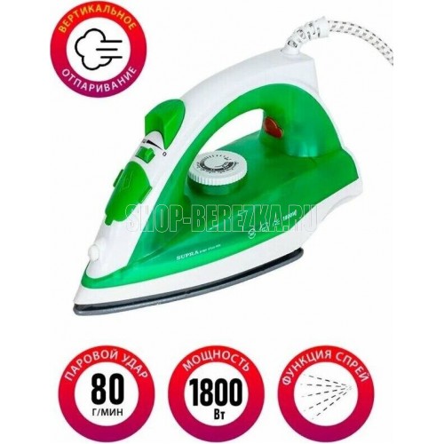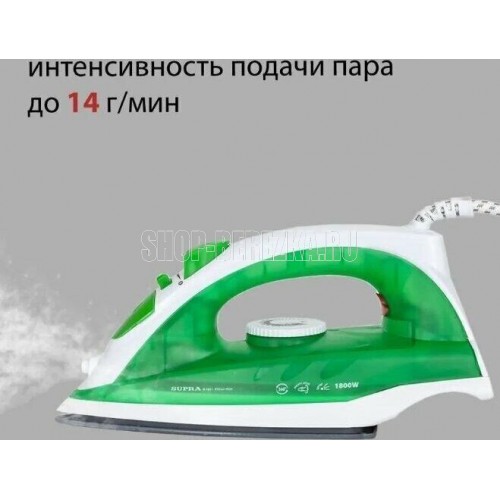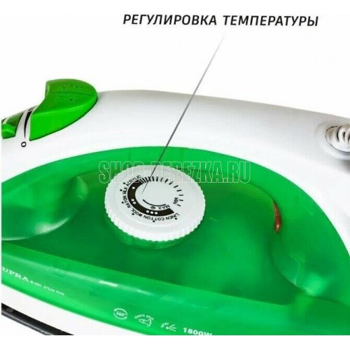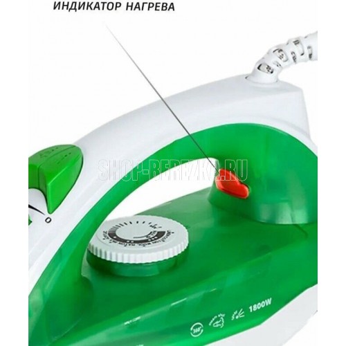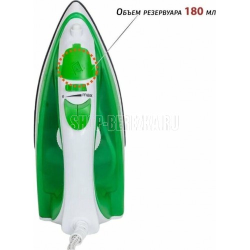 Тип устройства утюг паровой. Покрытие подошвы керамическое. Объем резервуара для воды, мл 180. Шаровое крепление сетевого кабеля есть. Постоянный пар, г/мин 14. Паровой удар, г/мин 80. Материал корпуса пластик. Цвет белый с зеленым. Энергопотребление. Потребляемая мощность, Вт. 1800. Электропитание, в., Гц. 220-240, 50-60.