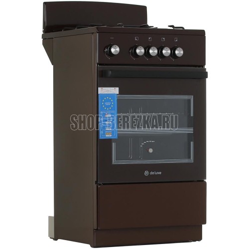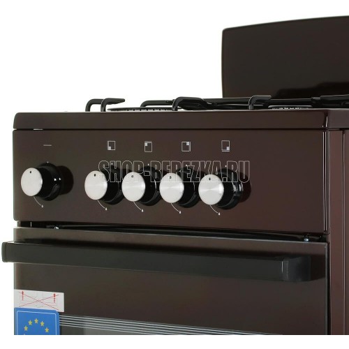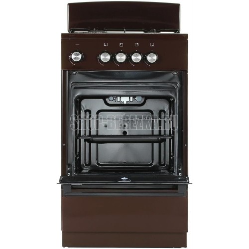 Типоразмер 50*50см, духовка с газ-контролем духового шкафа, 1 противень, цвет белый, черная эмалированная решетка рабочего стола, КОРИЧНЕВЫЙ ЦВЕТ
