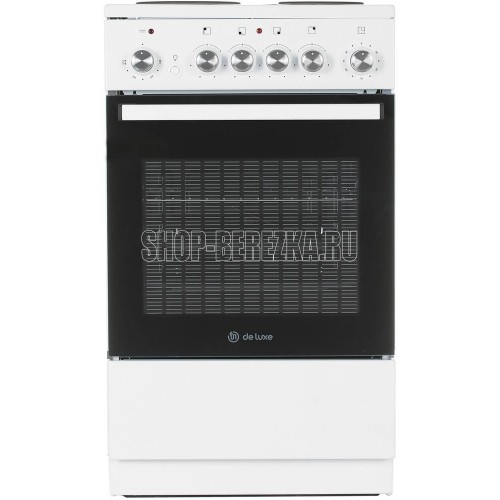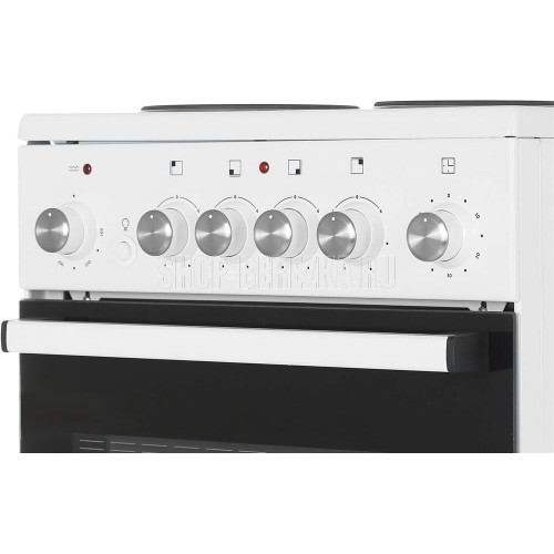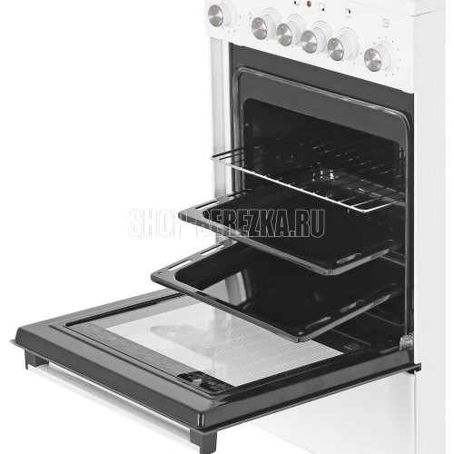 Размеры, мм - высота/ширина/глубина – 850/500/500 * Цвет - белый * 4 электрические конфорки 1,0/1,5/1,5/2,0 кВт * Объём духовки 43 л. * Гриль * Вертел * Освещение * Таймер механический * Большой противень * Малый противень * Решётка для жарки * Хозяйственный отсек *