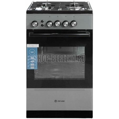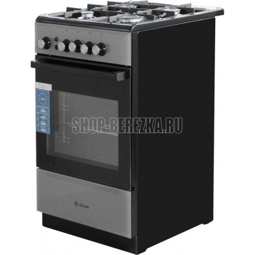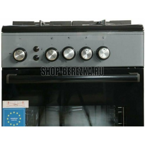 Размеры, мм - высота/ширина/глубина – 850/500/600 * Цвет - серый, стеклянный фасад *Основные характеристики варочной поверхности: 4 газовые конфорки 1,0/1,75/1,75/3,0 кВт. Электророзжик раб.стола * Основные характеристики духового шкафа: Горелка основная 2,5 кВт с УКП. Газ-контроль. Объём духовки 54 л. * Чугунная решётка * Хозяйственный отсек *