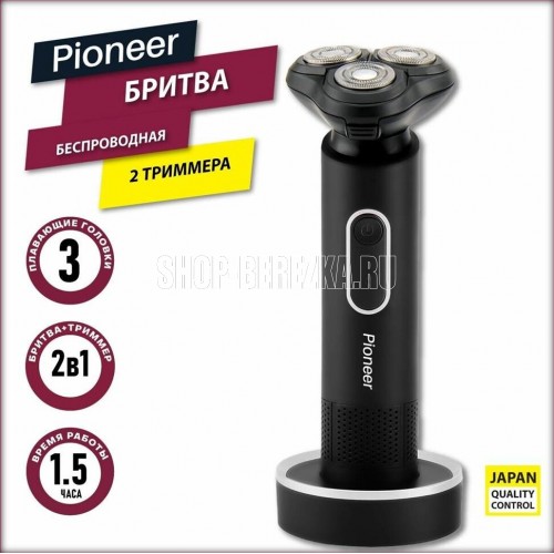 PIONEER BS002 Артикул: BS002 Тип устройства: бритва Тип питания: литиевая батарея 600 мАч Тип бритья: сухое и влажное Время непрерывной работы, мин.: 90 Время зарядки аккумулятора, час.: 2 Индикаторы: зарядки батареи Комплектация: бритва, насадка триммер для носа, насадка триммер для подравнивания бакенбардов/усов/бороды, чистящая щеточка, USB кабель, подставка, защитная крышка, гарантийный талон, инструкция на русском языке Материал корпуса: пластик Цвет: черный Размер упаковки, см. (ВхШхГ): 31.2x31.2x3.3 Вес в упаковке, кг.: 1.5