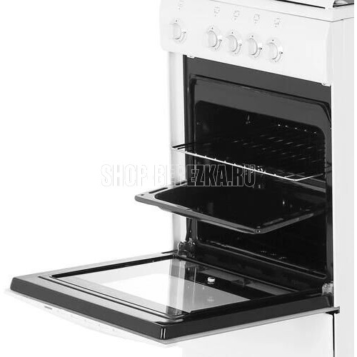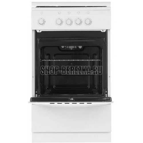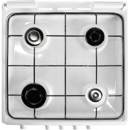 Газовая плита. Цвет - белый. 4 газовые конфорки 1,0/1,75/1,75/3,0 кВт. Газ-контроль. Объём духовки 46 л. Комплектация: противень, решётка для жарки, эмалированная решётка, стеклянная крышка рабочего стола, хозяйственный отсек. Размеры, мм В/Ш/Г– 850/500/500. Вес кг - 35.