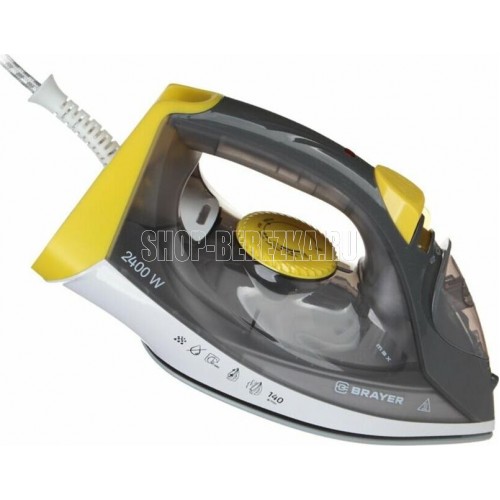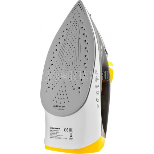 4003BR-GY Утюг BRAYER, 2400 Вт, керамич, пар 140 г/мин, антикапля, разбрызг, 330 мл Максимальная мощность 2400 Вт Керамическое покрытие подошвы, обеспечивающее легкое скольжение по ткани Постоянная подача пара 25 г /мин Максимальный паровой удар 140 г/мин Вертикальное отпаривание Автоматическое отключение Плавная регулировка температурных режимов Встроенная система защиты от накипи Функция "Антикапля" Функция самоотчистки Функция разбрызгивания Резервуар для воды емкостью 330 мл Длина шнура 1,9 м Электропитание: 230 В, 50-60 Гц