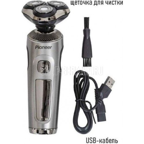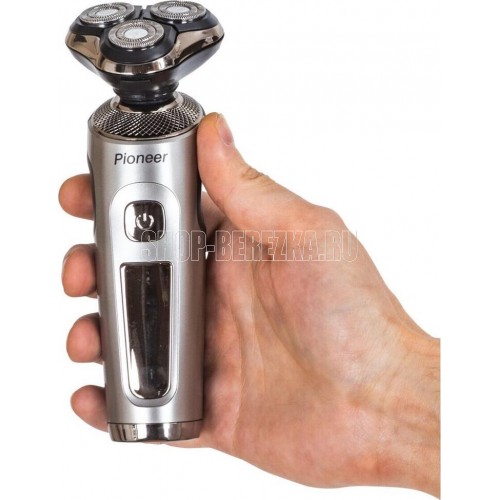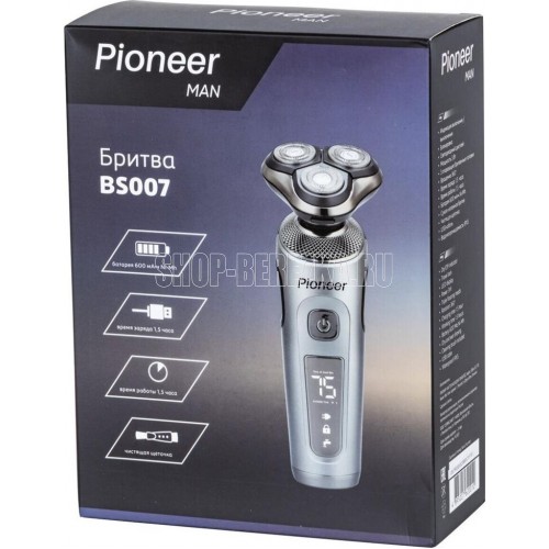 PIONEER BS007 цвет серебиристый тип электробритвы роторная способ бритья сухое, влажное плавающие головки да количество бритвенных головок 3 водонепроницаемый корпус да питание автономное время автономной работы до 90 мин