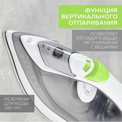 Мощность, Вт: 2400 Световой индикатор работы: Да Регулируемый пар до г/мин: 35 Паровой удар до г/мин: 140 Резервуар для воды, мл: 280 Функция разбрызгивания воды: Да Терморегулятор: Да Вертикальное отпаривание: Да Регулировка степени отпаривания: Да Покрытие подошвы: Керамическая подошва KeramoPro Самоочистка: Да Система защиты от накипи ANTI-CALC: Да Система защиты от капли ANTI-DRIP: Да Размер утюга Ш*В*Г, мм: 120*140*289 Шарнирное крепление шнура: Да Длина электрошнура, м: 1.8 Цвет шнура: Белый Цвет: Белый