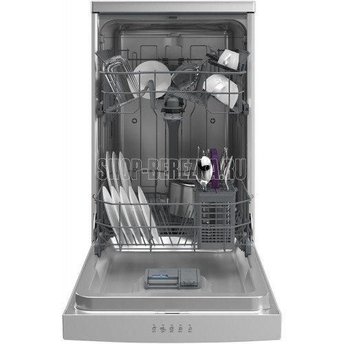 (ВхШхГ)85х44,8х60см. Цвет серебристый.Максимальная загрузка (комплекты посуды), шт.10.Количество программ 5.Дисплей LED.Отложенный старт, ч 0-19. Класс сушки A.Система защиты от протечек Overflow Safety.Тип сушки Конденсационная.Фильтр Частично металлический.Температурные режимы, ° С 35-50-65-70.