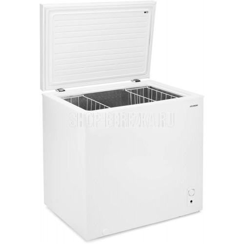 Морозильный ларь Hyundai CH2005 белый. Объем общий: 222л. Полезный объем 198л. Климатический класс: N. Класс энергопотребления: A. Мощность замораживания: 9 кг/сут. Система размораживания: ручная. Хранение при отключении питания до 30 ч. 1 компрессор. Хладагент: R600a. Открытие дверцы: вверх. Регулируемые по высоте ножки. Количество корзин: 1. Уровень шума: 42 дБ.