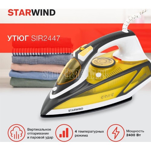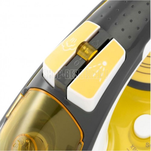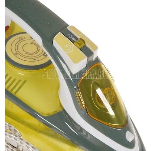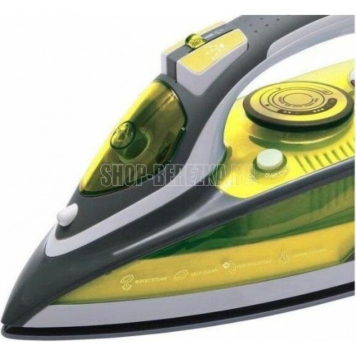Мощность: 2400 Ватт Емкость для воды 450 мл Регулировка температуры Функция разбрызгивания Паровой удар Вертикальное отпаривание Функция самоочистки от накипи Противокапельная система Керамическое покрытие подошвы Шарнирное вращение шнура на 360 °С Длина сетевого шнура 2 м
