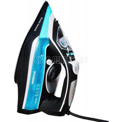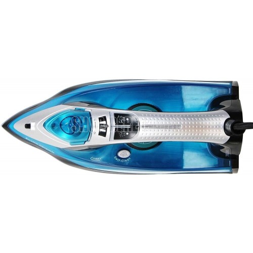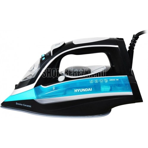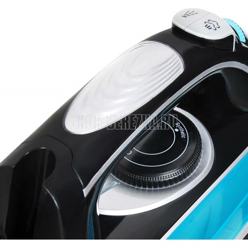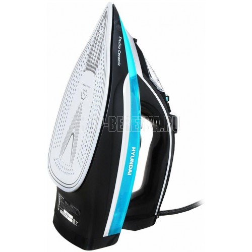 Утюг. Покрытие подошвы- Enviro ceramic, Система защиты от накипи, Система автоматического отключения, Вертикальное отпаривание, Постоянная подача пара, Противокапельная система, Шарнирное вращение шнура на 360 °С, Мощность: 2800 Вт, Объем резервуара: 420 мл, Удлиненный сетевой шнур: 2 метра, Напряжение: 220-240 В, 50/60 Гц, Цвет: Черный/голубой
