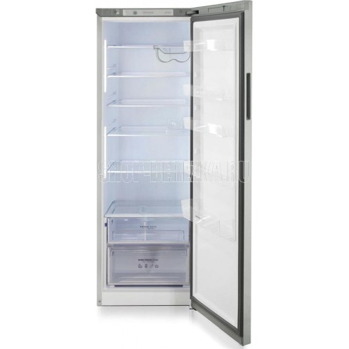 Однокамерный холодильник без морозильного отделения • цвет Cеребристый металлопласт • два вертикальных LED-светильника • регулировка влажности Humidity control • High fresh zone для больших продуктов • подвесная металлическая полка для бутылок • механическое управление • габариты 180x60x62,5см • объем 370л