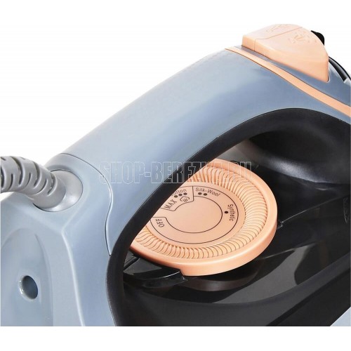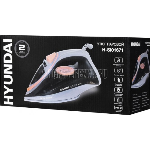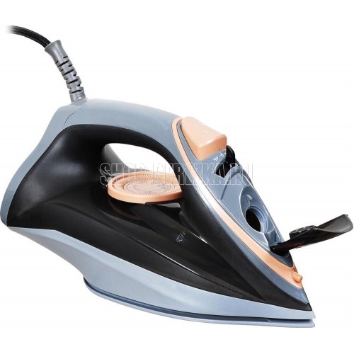 Покрытие подошвы- Enviro ceramic Система защиты от накипи Система автоматического отключения Вертикальное отпаривание Постоянная подача пара Противокапельная система Шарнирное вращение шнура на 360 °С Мощность: 2400 Вт Паровой удар: 160 г/мин Объем резервуара: 250 мл Удлиненный сетевой шнур: 2м Напряжение: 220-240 В, 50/60 Гц
