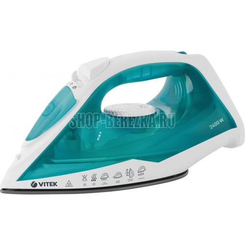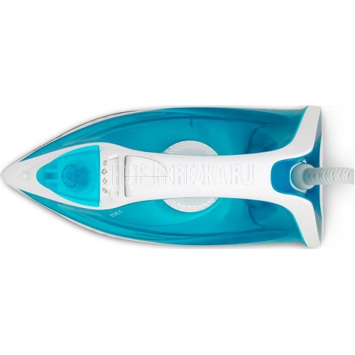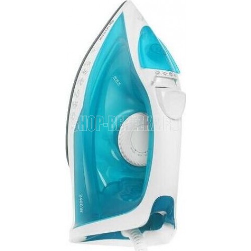 Утюг. Мощность: 2400 Вт, Материал подошвы: Подошва UniCera – уникальное двойное керамическое покрытие, обеспечивающее сверхлегкое скольжение по ткани, Паровой удар: 140 г/мин, Вертикальное отпаривание, Система самоочистки, Функция разбрызгивания, Противокапельная система, Защита от накипи, Объeм резервуара для воды: 300 мл, Регулировка подачи пара, Шаровое крепление шнура, Длина сетевого шнура: 1,8 метра, Мерный стакан, Цвет: Бирюзовый/белый
