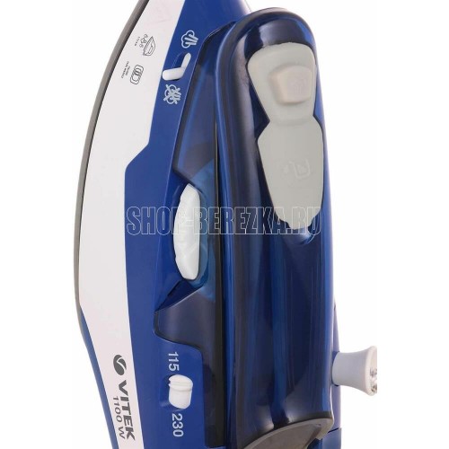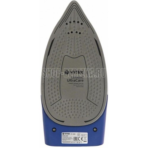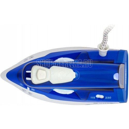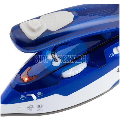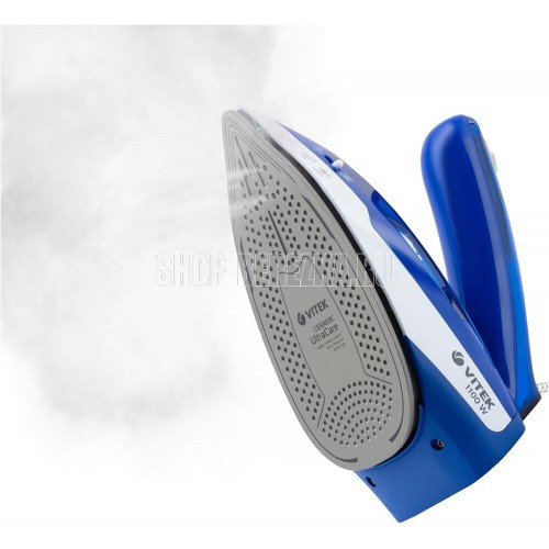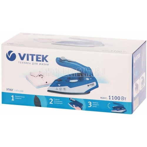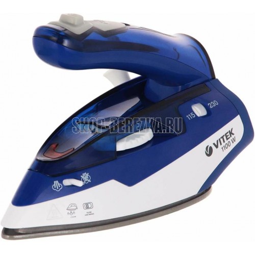 Утюг дорожный. Мощность: 1100 Вт, Емкость для воды: 60 мл, Подошва: Ceramic Ultra Care – уникальное керамическое покрытие для максимальной защиты ткани, Складная ручка. цвет: Синий/белый