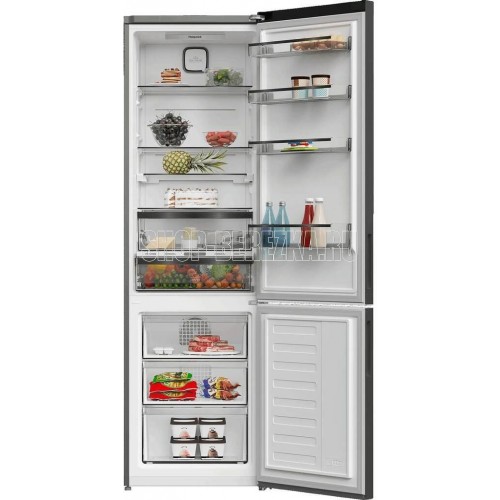 Общий полезный объем 357 л.,(холодильное отделение 257 л., морозильное отделение 100 л.), Dual Cool, годовое потребление 332 квт , климатический класс SN-T, возможность замораживания (кг/24ч): 2, уровень шума (дБ(А)): 37, Эко-режим, режим Holiday, режим Быстрая заморозка, режим Быстрое охлаждение, LED освещение на левой стенке, перенавешиваемые двери, стандартный компрессор, контроль уровня влажности, складная полка, зона свежести, цвет темно нержавеющая сталь
