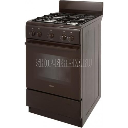 Габариты ШхГхВ, см: 50х58,5х85; Объем духового шкафа, л: 52; Тип очистки: Гидролизная; Тип подключения: Газовый; Количество зон приготовления: 4; Цвет модели: Коричневый; Материал варочной поверхности: Эмаль; Материал решеток варочной поверхности: Сталь; Крышка плиты: Щиток; Тип направляющих духового шкафа: Штампованные; Внутреннее покрытие духового шкафа: Эмаль легкой очистки SMART CERAMIC; Количество стекол в дверце духового шкафа: 2; Ящик для посуды и принадлежностей: Откидная крышка; Контроль температуры духового шкафа: Кран с безопасностью; Нижний нагрев; Жаровня: 1; Регулировочные ножки; Комплект сменных сопел; Противень: 1; Решетка варочной поверхности: 1; Решетка духового шкафа: 1; Диапазон номинального напряжения сети, В: 220-230; Номинальная частота сети, Гц: 50; Основная горелка духового шкафа, Вт: 2350