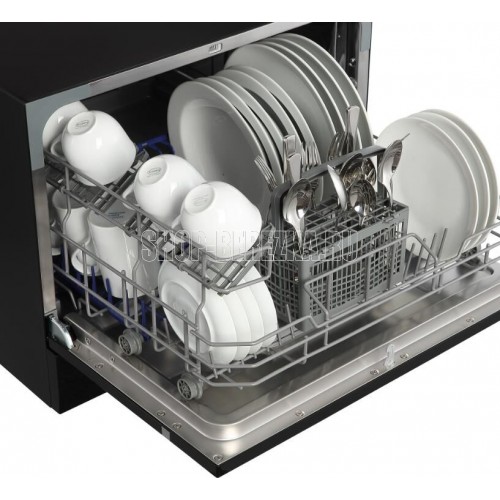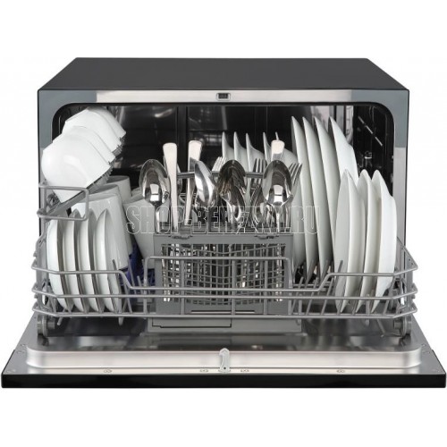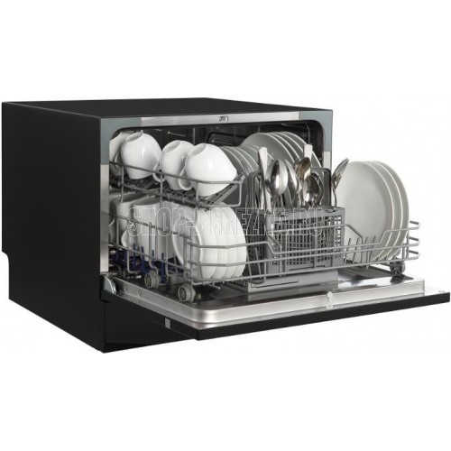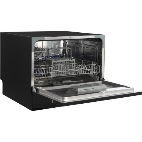 Компактная ПММ; Габариты ШхВхГ, см: 55х43,850; Тип установки: Отдельностоящая; Тип сушки: Конденсационная; Количество корзин для приборов: 1; Цвет: Черный; Количество программ: 7; Количество комплектов: 6; Расход воды за цикл: 6 л; Основные программы: Интенсивная, Обычная, ЭКО, Стекло, Быстрая, 90 минут, Детская посуда; Максимальная температура: 70 ℃; Минимальная температура: 40 ℃; Уровень шума при работе: 49 дБ; Энергопотребление за цикл: 23 кВт; Дисплей; Таймер отсрочки запуска; Класс энергоэффективности: A+