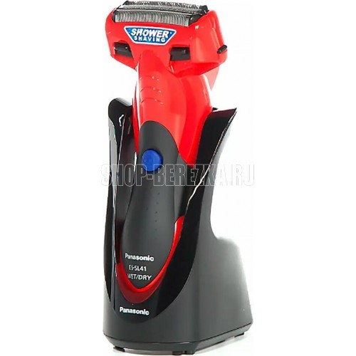 PANASONIC ES-SL41R цвет КРАСНЫЙ 7600 об/мин, сеточная система бритья, 3 бритвенные головки, сухое/влажное бритье, питание: от аккумулятора, время автономной работы 21 мин, подставка для зарядки.