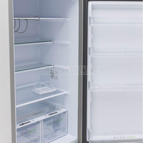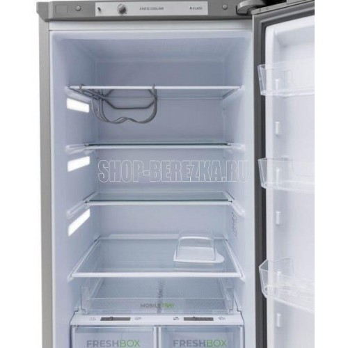 Двухкамерный холодильник с нижней морозильной камерой; Габариты ВхШхГ: 180х60х62,5см; Объем: 330/245/85л; Цвет: Металлик; Автоматическое оттаивание; Две складные полки; Горизонтальное LED освещение; Регулировка влажности Humidity control; Выдвижной лоток; Механическое управление; Класс энергоэффективности: A; Суточный расход электроэнергии, при температуре окружающего воздуха 24°C, кВтч: 0.87; Климатический класс: N; Количество ящиков в морозильном отделении: 2; Размораживание морозильной камеры: ручное; Автономное сохранение холода, ч: 12; Мощность замораживания, кг/сутки: 5; Минимальная температура в морозильной камере, °C: -18