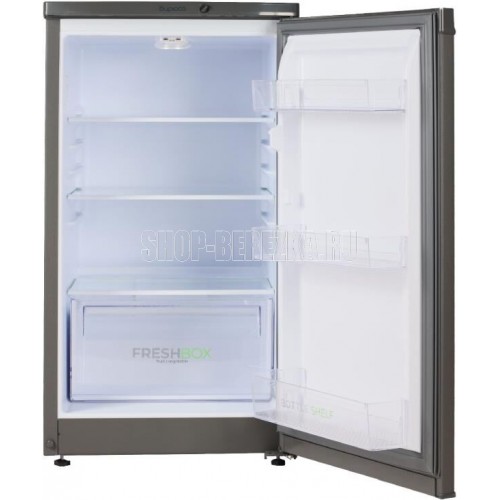 Узкий однокамерный холодильник без морозильного отделения. • цвет Матовый графит • LED освещение • механическое управление • габариты 87x48x60,5см • объем 115/115/л Количество компрессоров 1, Суточный расход электроэнергии, при температуре окружающего воздуха 24°C, кВтч 0.47, Климатический класс N, Возможность перевешивания двери, Класс энергоэффективности A