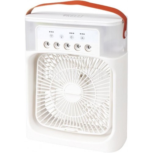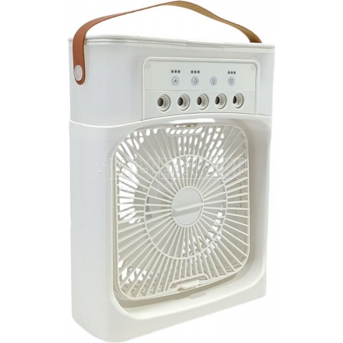 Настольный вентилятор с функцией увлажнителя и таймером выключения Диаметр: 15 см Мощность: 10 Вт 3 скорости Объём: 600 мл 3 режима распыления воды 7 цветов подсветки Встроенный таймер Отсек для аромамасел USB(Туре-С) Цвет БЕЛЫЙ Размер упаковки: 34,5*22*38см Сеть: 5В,2А