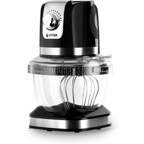 Кухонная машина. Мощность: 1000 вт, Число скоростей: 12, Венчик для взбивания: 1, Крюки для замешивания теста, Количество насадок: 3, Защитная крышка на чашу, Материал чаши стекло, Объем чаши: 4 литра, Материал корпуса: пластик, Вес: 5,1кг, Длина сетевого шнура: 120 см., Цвет: Черный/серебро