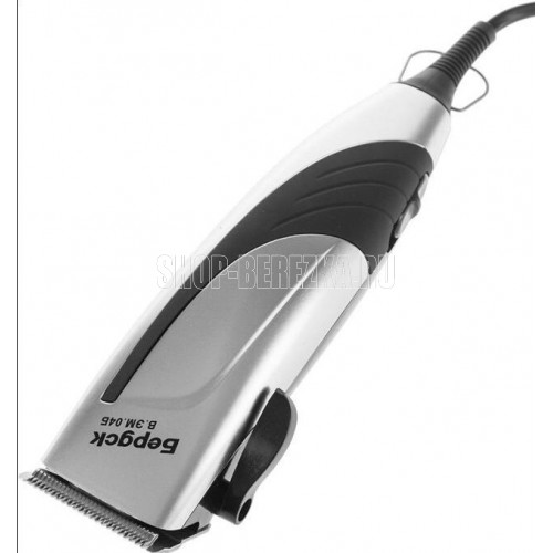 машинка для стрижки волос сетевая, Двигатель вибрационного действия Подвижный и неподвижный ножи изготовлены из нержавеющей стали с хромированным покрытоем Прочный корпус, зргономичный дизайн Петля для удобного хранения Насадки для стрижки 4 шт., ножницы, расчестка Сетевое питание Номинальное напряжение 220 В Частота 50 Гц Номинальная мощность 12 Вт