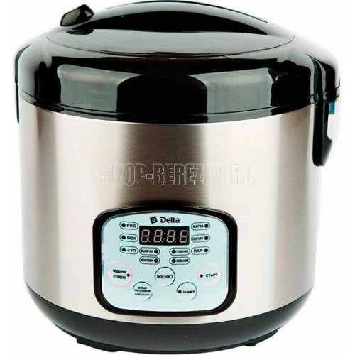 Макс. мощность 900Вт. Объем чаши 5л. Корпус из нерж. стали. Съемная чаша с антипригарным покрытием. 9 автомат. программ. Режим "Шеф-повар". Защита от перегрева. Паровая емкость. Ложка. Половник. Мерный стакан 160 мл.