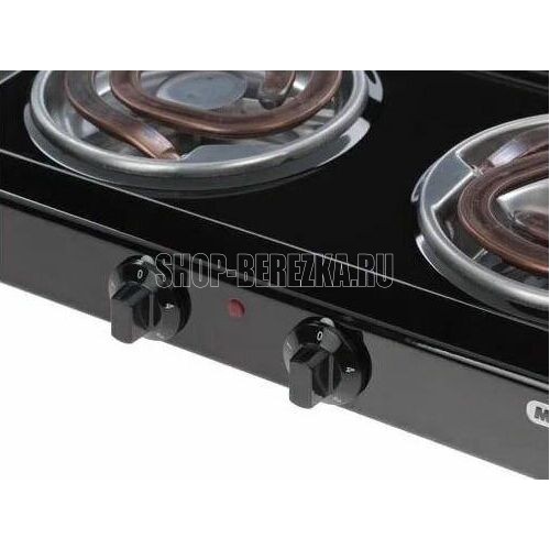 габариты ШхГхВ: 54x29.6x9 см электрическая варочная панель эмалированная рабочая поверхность 2 конфорки механическое управление Материал рабочей поверхности эмаль Количество конфорок 2 Количество конфорок электрических: 2 Особенности Цвет чёрный