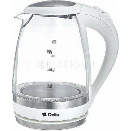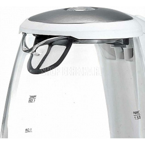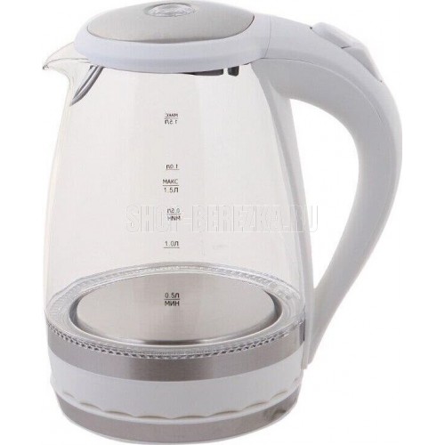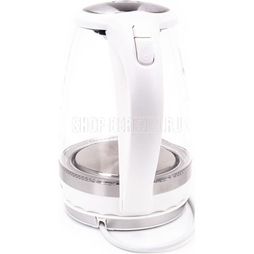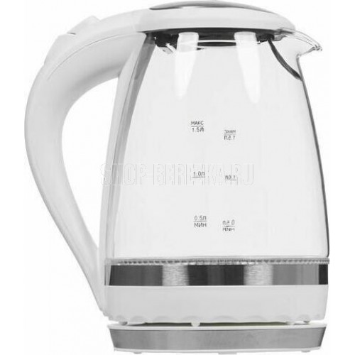 Макс. мощность 2200 Вт. Объем 1,5л. Закрытый нагревательный элемент из нерж. стали. Корпус из жаропрочного стекла. Вращение корпуса на 360°. Шкала уровня воды. Внутренняя LED-подсветка. Многоуровневая защита: автоматич. отключение при закипании, отключение при снятии чайника с базы, отключение при недостаточном количестве воды.