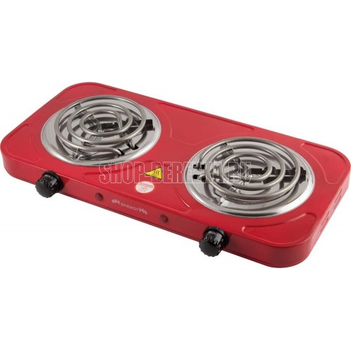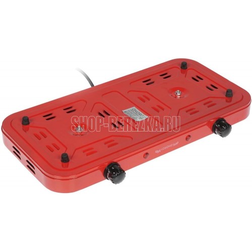 Мощность: 1000 Вт + 1000 Вт. Нагревательный тен. Размер конфорок: 140 мм. 2 световых индикатора работы. Защита от перегрева. Состав: металл, пластик, кабель. Цвет красный.