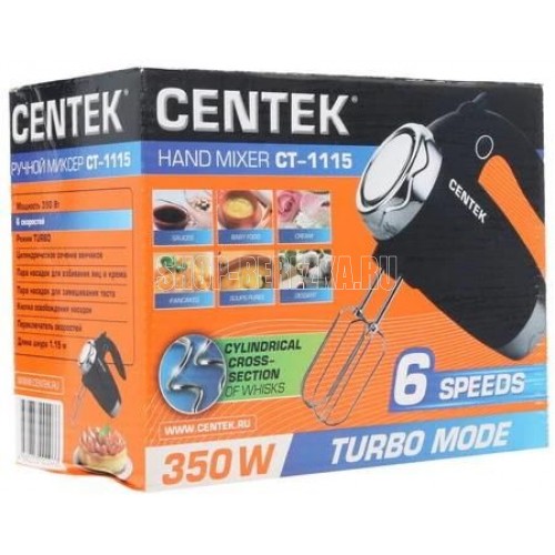 Мощность 350 Вт. Кол-во скоростей 6. Режим «Турбо». Пара насадок для взбивания. Пара насадок для замешивания. Цилиндрическое сечение венчиков. Кнопка освобождения насадок. Переключатель скоростей. Длина шнура 1.15 м.