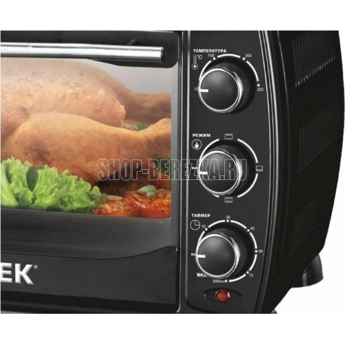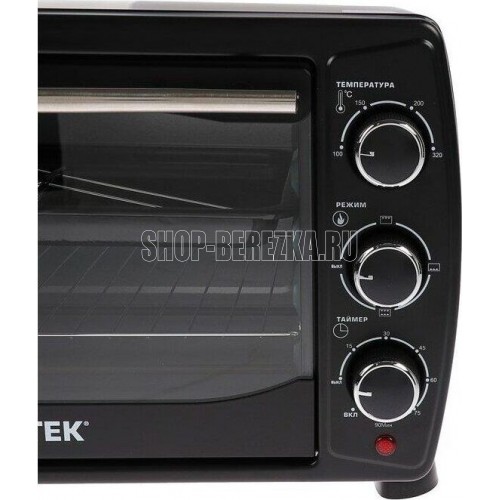 Жарочный шкаф Centek CT-1536-20 (черн) Мощность1400 Вт Объем жарочной камеры20 л Регулируемая температурадо 320 °С 4 режима приготовления Звуковой сигнал готовности Световой индикатор работы Хромированные поворотные переключатели Усиленные нагревательные элементы Эмалированный противень Плавный поворотный таймер на 90 мин с автоотключением и функцией непрерывной работы Комплект аксессуаров Жарочная решетка Стальной эмалированный противень Крюк для вынимания противня