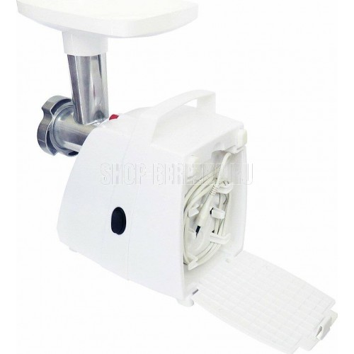 Габариты 0,30 х 0,19 х 0,40 Вес 4,9 кг. Мощность1500 Вт Производительность 1,66 кг/мин Материал Пластик Защита двигателя от перегрузки; Удобное хранение ножа и решеток; 3 вида решеток для получения фарша разной консистенции - с диаметром отверстий 4,9 мм и 7 мм, а также овальными отверстиями; Высокое размещение шнековой камеры; Ручка для переноски; Устойчивые нескользящие ножки для фиксации мясорубки на поверхности стола
