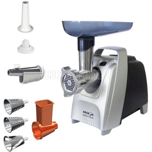 Мощность: 2000 Вт * Производительность: 4 кг/ч * Цвет черно-серебристый металлик * •Функция Реверс • Прочный и острый нож с саблевидной кромкой • Удобный отсек для хранения шнура и решеток • Ручка для переноски • Ножки из нескользящего эластичного материала •Автоматическое отключение при перегрузке Электрическая мясорубка М61.01 повышенной мощности без труда справится с мясом любого качества. Предназначена для приготовления фарша из мяса, рыбы, грибов; измельчения овощей, фруктов; получения пюреобразных масс из ягод; профилирования теста.