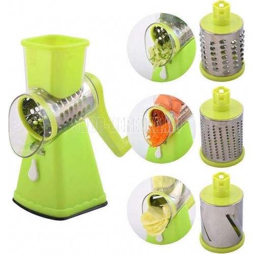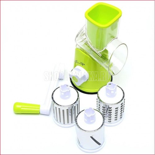 Ручная овощерезка Мультислайсер 3в1 Для фруктов и овощей Современная и многофункциональная овощерезка оборудована 3 сменными насадками: •Насадка "Зернистый барабан". Подходит для измельчения сыра, орехов, лука и других твердых продуктов •Грубое лезвие с большими отверстиями для крупной резки и шинковки. Идеально для шинкования капусты и других видов салатов. •Лезвие с длинными узкими прорезями, идущими наискосок. Насадка для приготовления домашних чипсов, салатов, запеченных овощных блюд из картофеля, цукини, огурцов. Овощерезка легко собирается и разбирается, что упрощает её хранение. Не скользит по столу. Основа изделия надежно крепится к любой чистой и сухой поверхности за счет присоски и блокирующего рычажка.