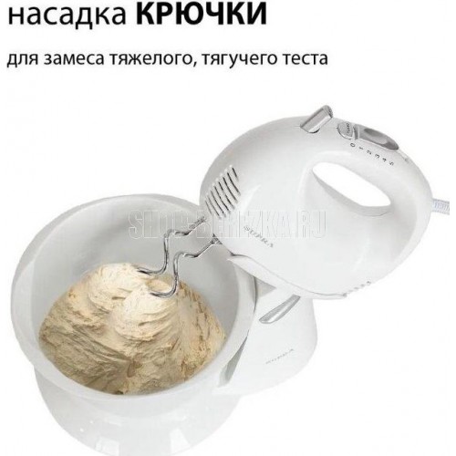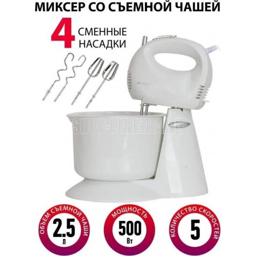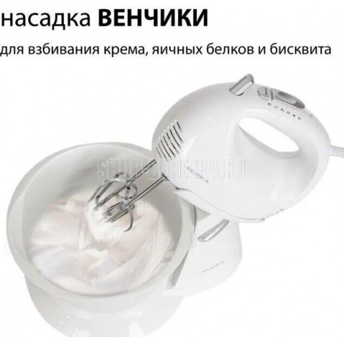 Мощность, Вт. 500 Тип управления механическое Количество скоростей 5 Турборежим есть Чаша Материал чаши пластик Объем чаши, л. 2,5 Комплектация Комплектация миксер, насадки для взбивания яиц и крема, насадки для замеса тяжелого теста, инструкция на русском языке, гарантийный талон Корпус Материал корпуса пластик Цвет белый Габариты и вес Вес в упаковке, кг. 1.7 Размер упаковки, см. (ВхШхГ) 21x31.5x22 Энергопотребление Электропитание, в., Гц. 220-240, 50